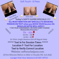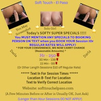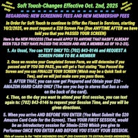 ⭐️⭐️⭐️⭐️⭐️⭐️⭐️ - Being the New Owner of Soft Touch, At First I will continue to honor all current Rules and Policies of the Previous Soft Touch Owner. HOWEVER, I DO WELCOME ALL CLIENT COMMENTS AND SUGGESTIONS, as I mentioned above. AFTER I GATHER ALL INPUT FROM ALL CLIENTS AND CURRENT PERFORMERS, I will THEN DECIDE Whether We will Change Certain Policies, And If we do, THEY WILL BE LISTED HERE BELOW.
