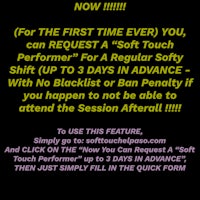 ⭐️⭐️⭐️⭐️⭐️⭐️⭐️ - Being the New Owner of Soft Touch, At First I will continue to honor all current Rules and Policies of the Previous Soft Touch Owner. HOWEVER, I DO WELCOME ALL CLIENT COMMENTS AND SUGGESTIONS, as I mentioned above. AFTER I GATHER ALL INPUT FROM ALL CLIENTS AND CURRENT PERFORMERS, I will THEN DECIDE Whether We will Change Certain Policies, And If we do, THEY WILL BE LISTED HERE BELOW.